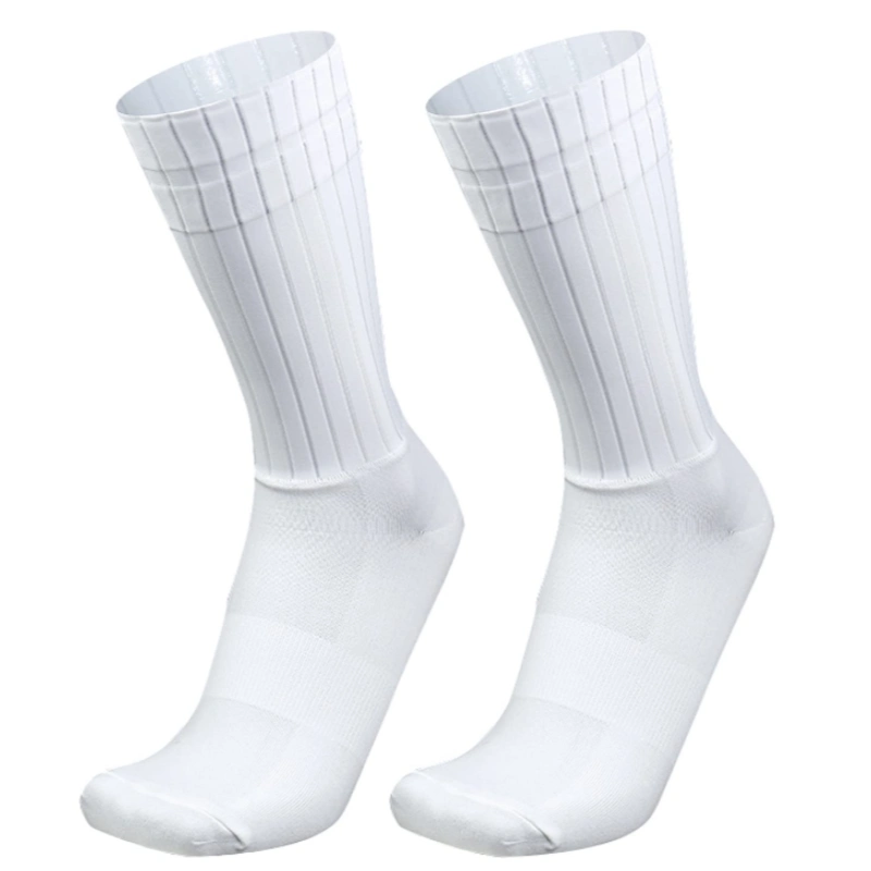 Socks used in competition may not rise above the midpoint between the ankle (lateral malleolus) and the knee (fibula head), ensuring a level playing field. Our aero socks’ default cuff height is designed with this rule in mind, so teams can use them in UCI-sanctioned races confidently. We provide a range of standard sizes and can also tailor sizing to your requirements. Our sizing covers the typical spectrum for adult cyclists (and we can do youth sizes on request). Below is a general size chart for reference: