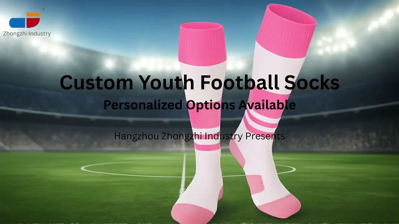 Youth football players typically wear knee-high football socks, over-the-calf compression socks, grip socks, or scrunch socks, designed for comfort, support, and performance. These socks are tailored to fit young athletes, providing moisture-wicking, anti-slip features, and added cushioning for better stability and comfort during games and training sessions.