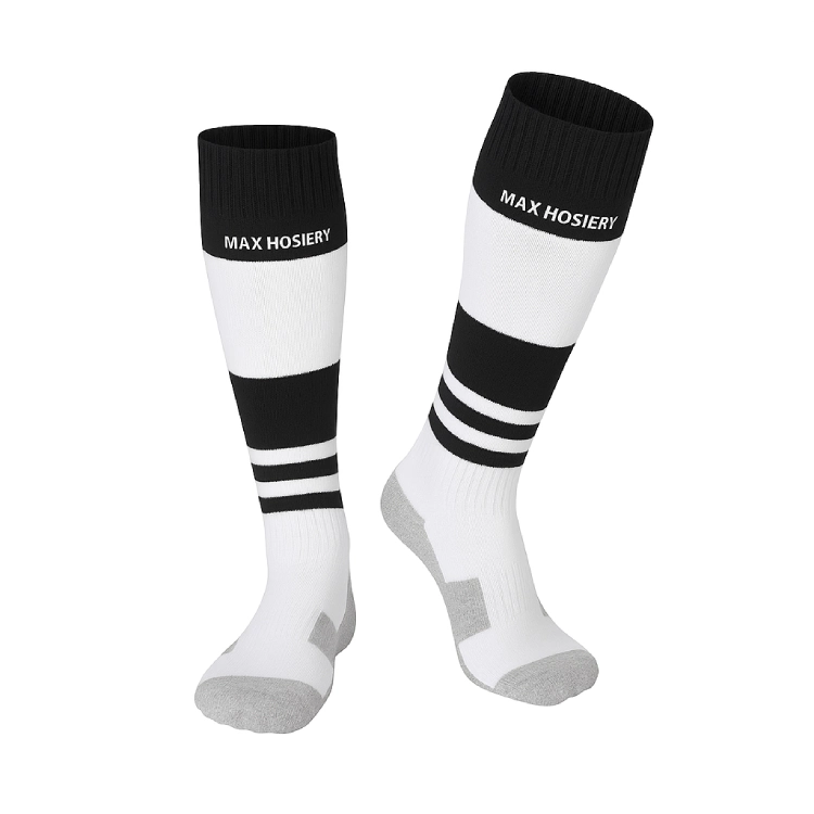 In football, players are required to wear socks that cover their shin guards and are made from durable, performance-focused materials. The socks must fit securely to prevent slipping and discomfort during the game. Custom football socks are often used by teams to ensure a uniform look while meeting the required performance standards for the game.